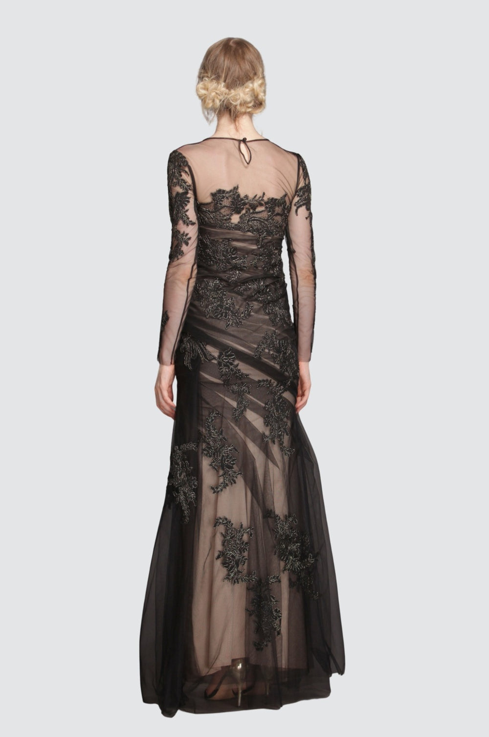 Black & Gold Leaf on Ruched Mesh Gown