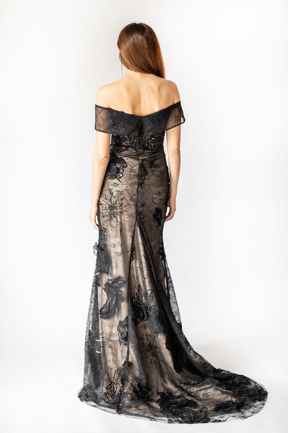 Opulent Materials: The gown is crafted from the best materials, ensuring a luxurious feel and a flattering fit. The combination of black, nude sequins, and rich trimming creates a harmonious and visually stunning ensemble.