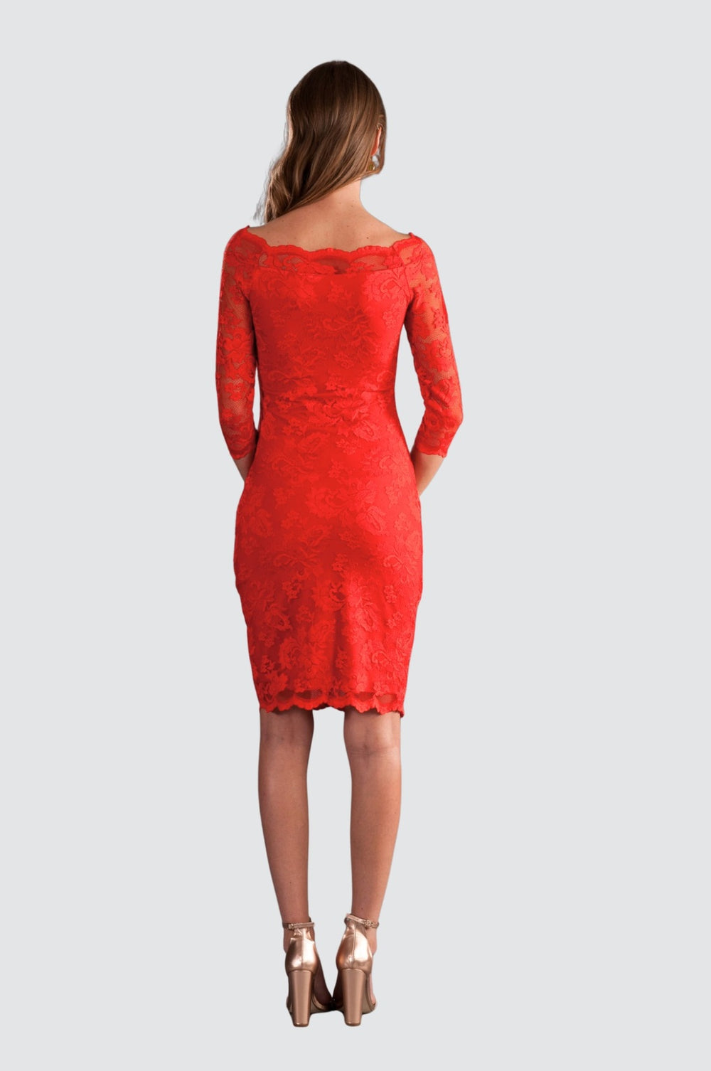 Elevate your evening look with this chic red lace cocktail dress, designed for timeless elegance. Featuring a sweetheart neckline, 3/4-length lace sleeves, and a fitted silhouette, this dress accentuates your curves while offering supreme comfort. The intricate floral lace adds a touch of sophistication, while the knee-length hem makes it perfect for weddings, parties, and formal gatherings. Make a bold and refined statement with this versatile, standout piece in your wardrobe.