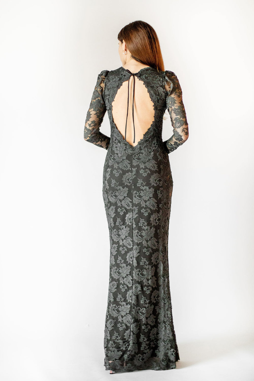 Step into timeless elegance with our Full Sleeve Lace Gown – a sophisticated ensemble that marries the allure of full sleeves with the sensuality of an open back. Crafted from exquisite deep grey lace, this gown exudes refinement and grace, perfect for those seeking a classic yet modern look.