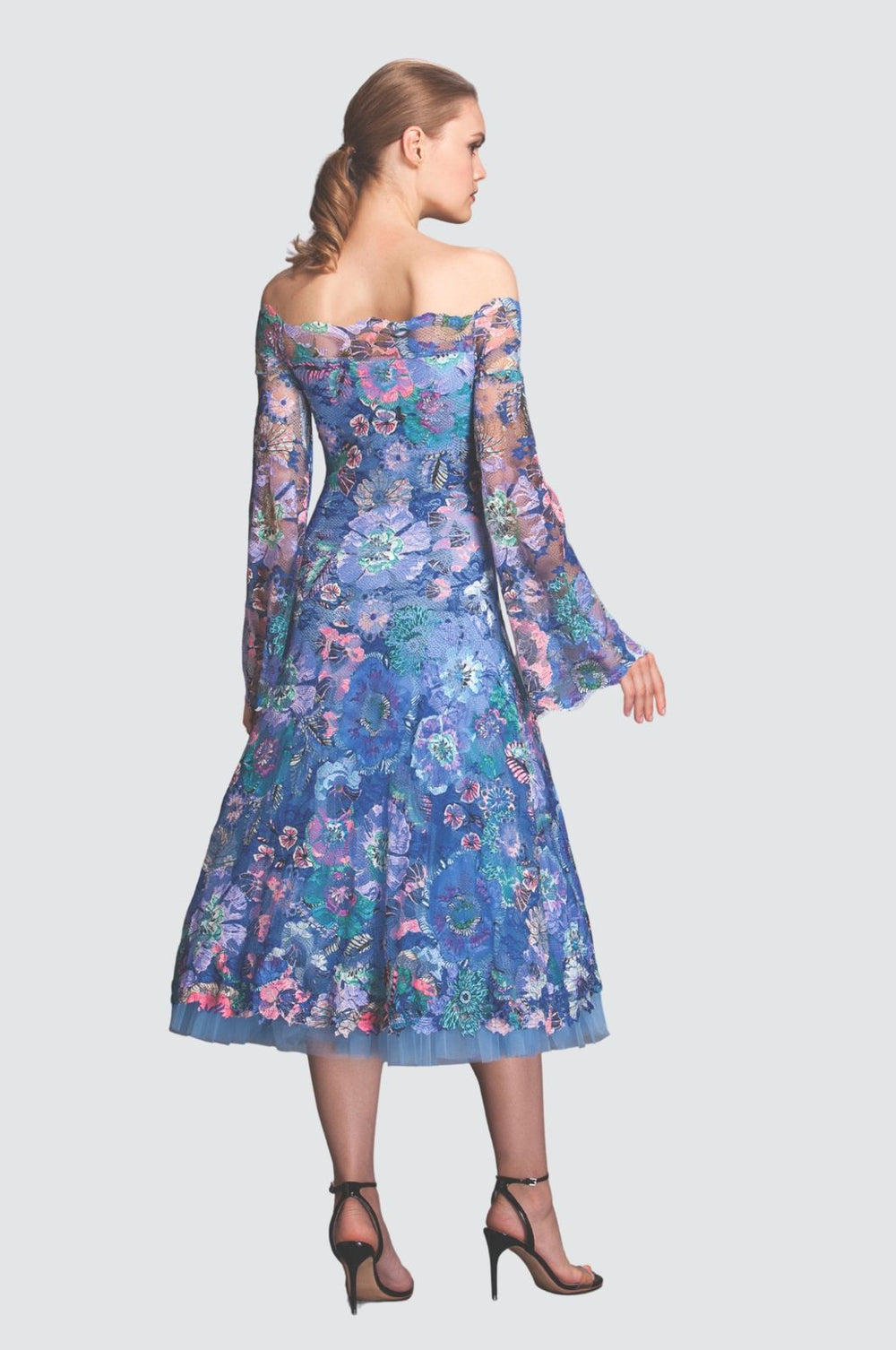 A perfect mother-of-the-bride dress or simple resort wear for your next holiday. The long sleeves with flared ends add a drama element to this look.