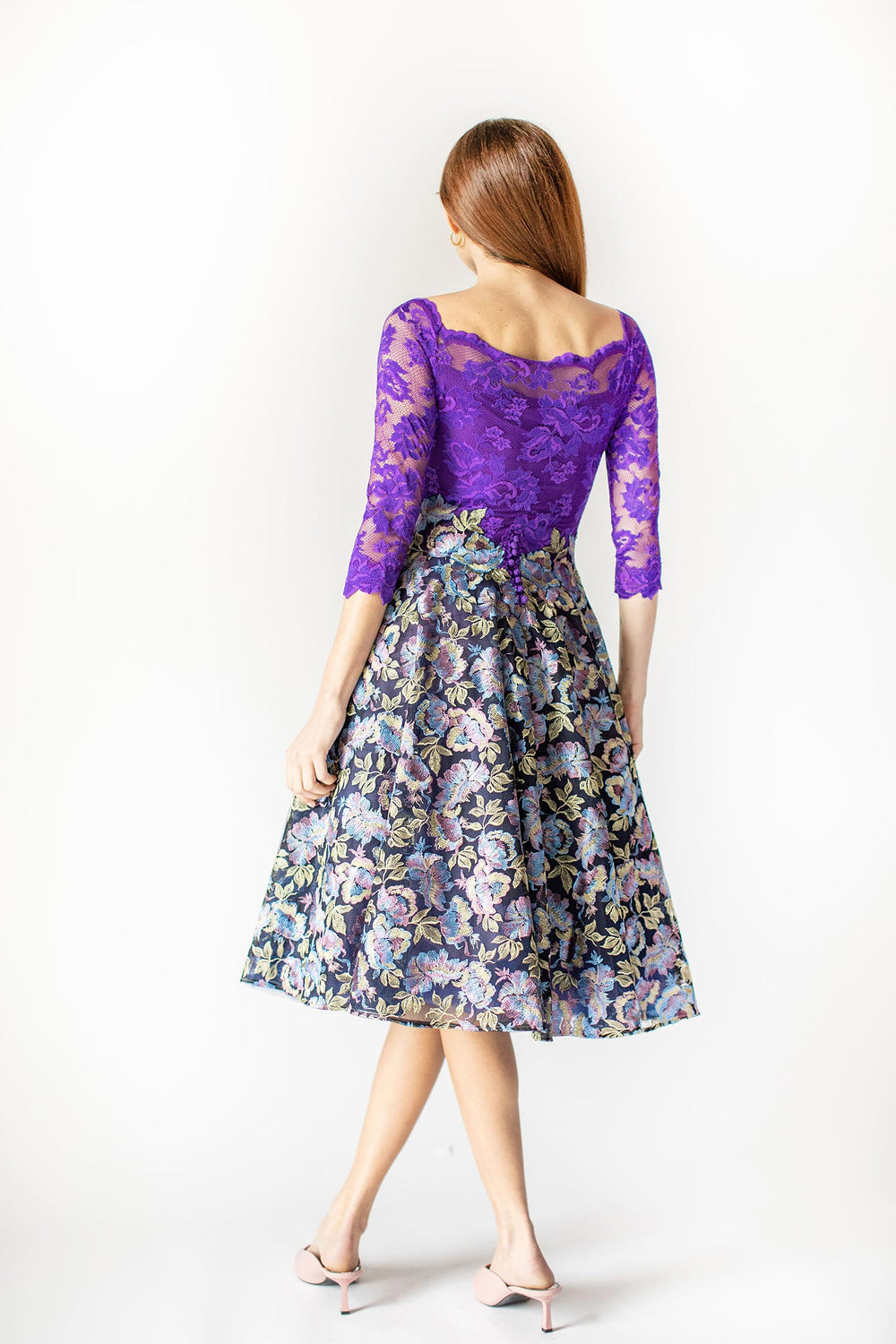 This a-line dress features a royal versailles print on the bottom, adding an extra touch of luxury to the already regal design.