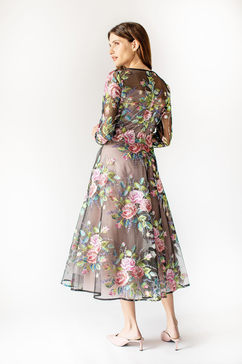 The soft tulle adds a touch of elegance, making it the perfect choice for a special wedding guest outfit or for any kind of sweet event, such as a baby shower.
