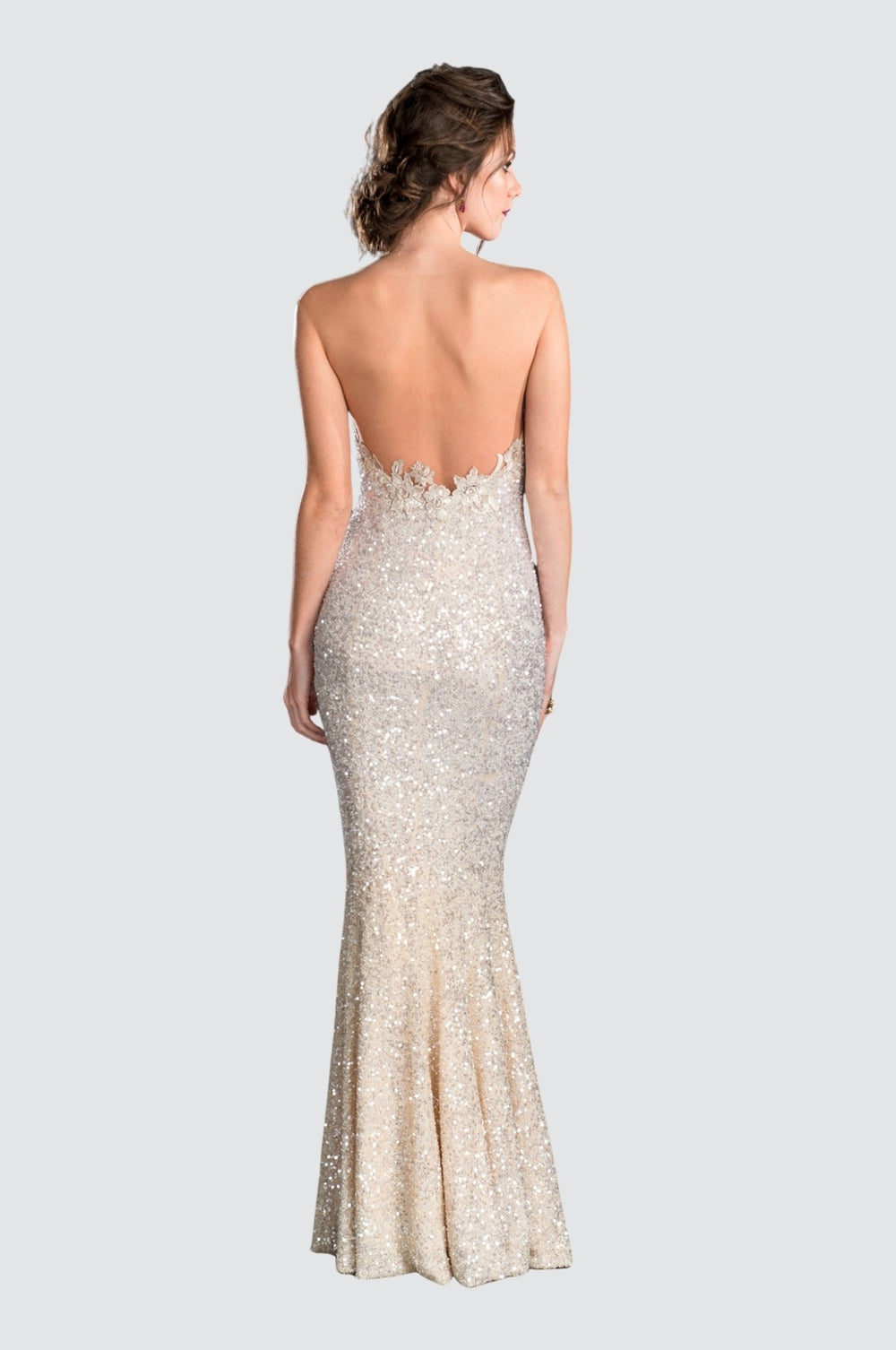 Sequin Illusion Neck Mermaid Flare Gown
