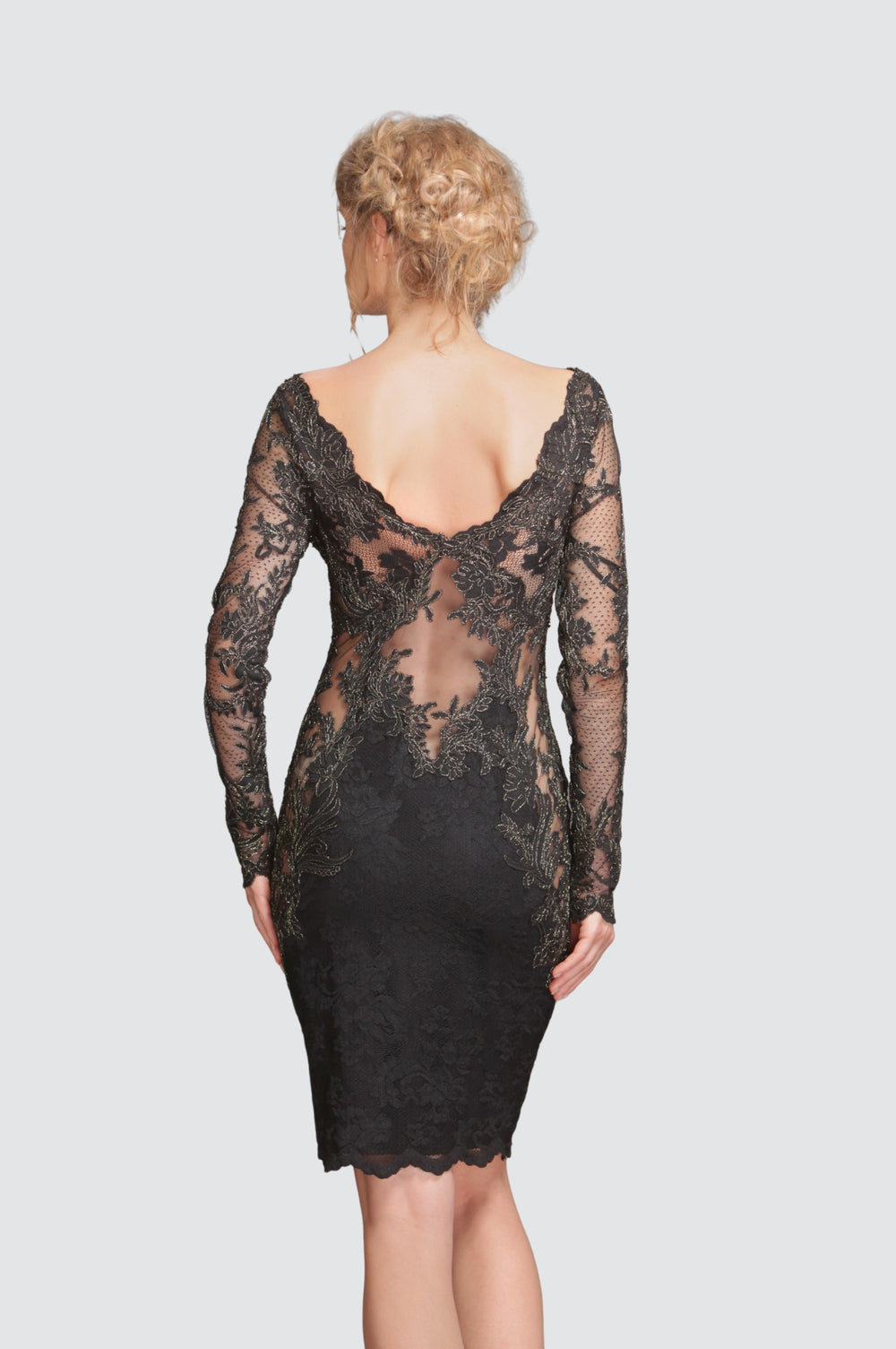 See through full sleeves with knee length lace dress