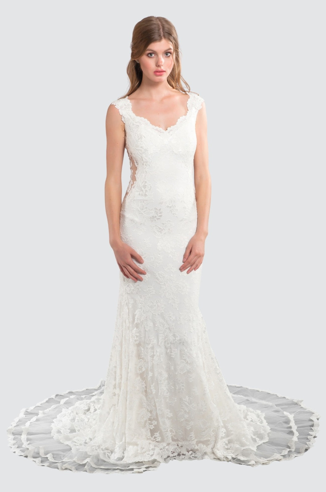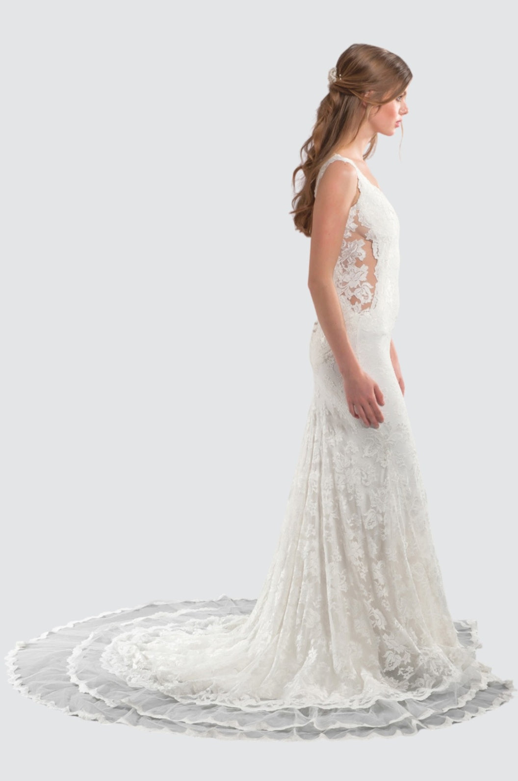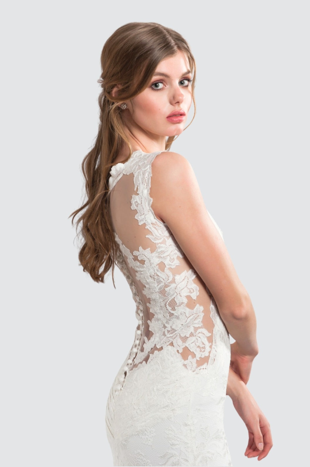 Olivia's silhouette is a vision of refined elegance, enhancing your natural beauty with its graceful lines and intricate lace detailing. The gown exudes a sense of timeless romance, creating a look that is both enduring and captivating.